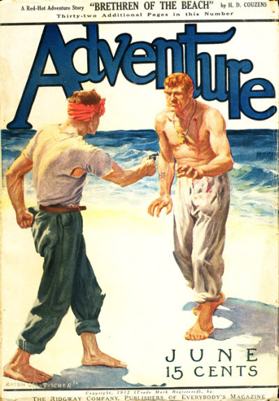Anton Otto Fischer – Famous Saturday Evening Post illustrator, one of whose covers was used twice. The only time that happened, to my knowledge. Arthur S. Hoffman chose it to go along with the reprint of Brethren of the Beach, expanded by H.D. Couzens into novel form and published posthumously.