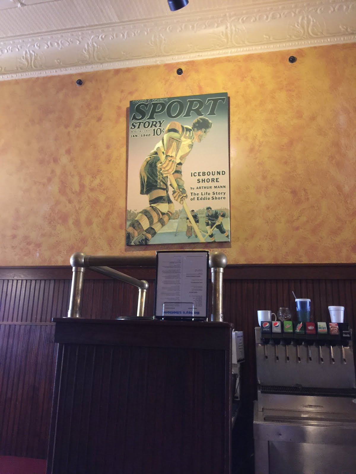 Sport Story cover poster in a restaurant near the Pulpfest venue |