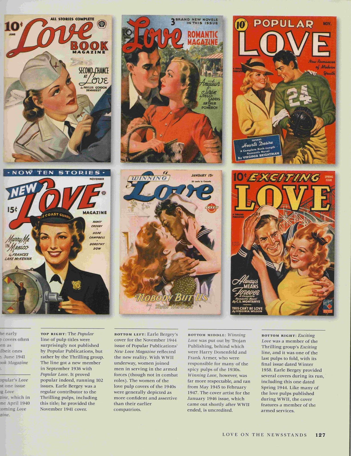 This book takes readers back to an era without television or radio, when magazine covers featured original art designed to lure readers into picking up and buying them. From the early 1900s to the early 1950s, pulp magazines were the popular entertainment media of choice for millions of readers across the English speaking world.They were published in America and to a lesser extent, in Canada and the United Kingdom and read across the world, reaching as far as Australia and South Africa. Some were even translated into French and Spanish.